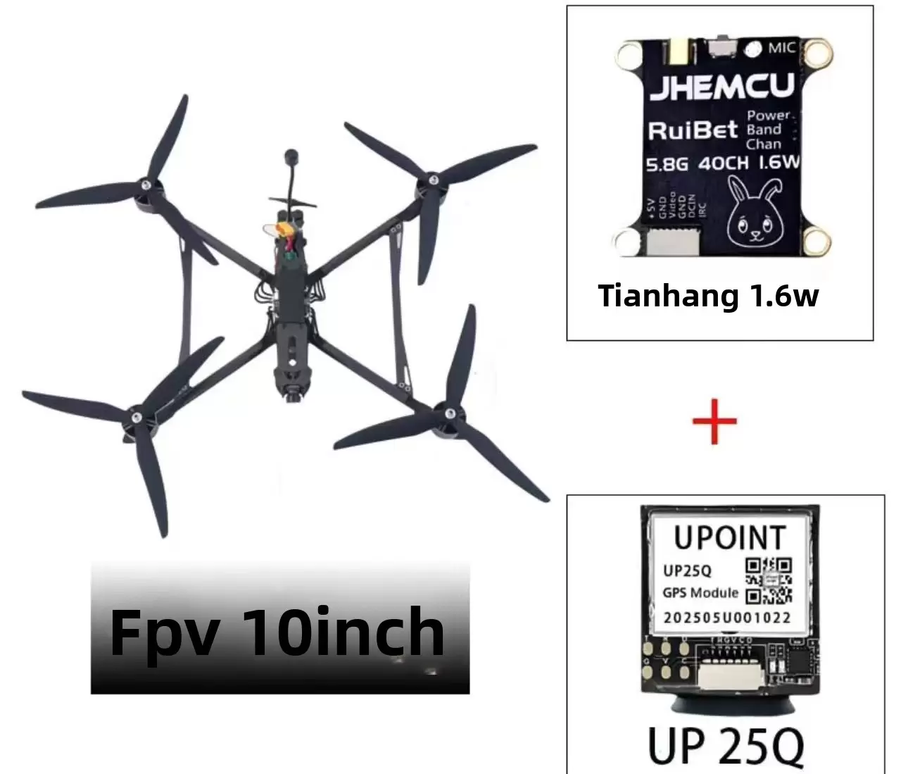 Zuhause / Produkte / Drohnenplattform / FPV-Drohne / 10-Zoll-FPV-Drohne mit KI-Steuerung und Glasfaserübertragung Gehäusematerial : Kohlefaser